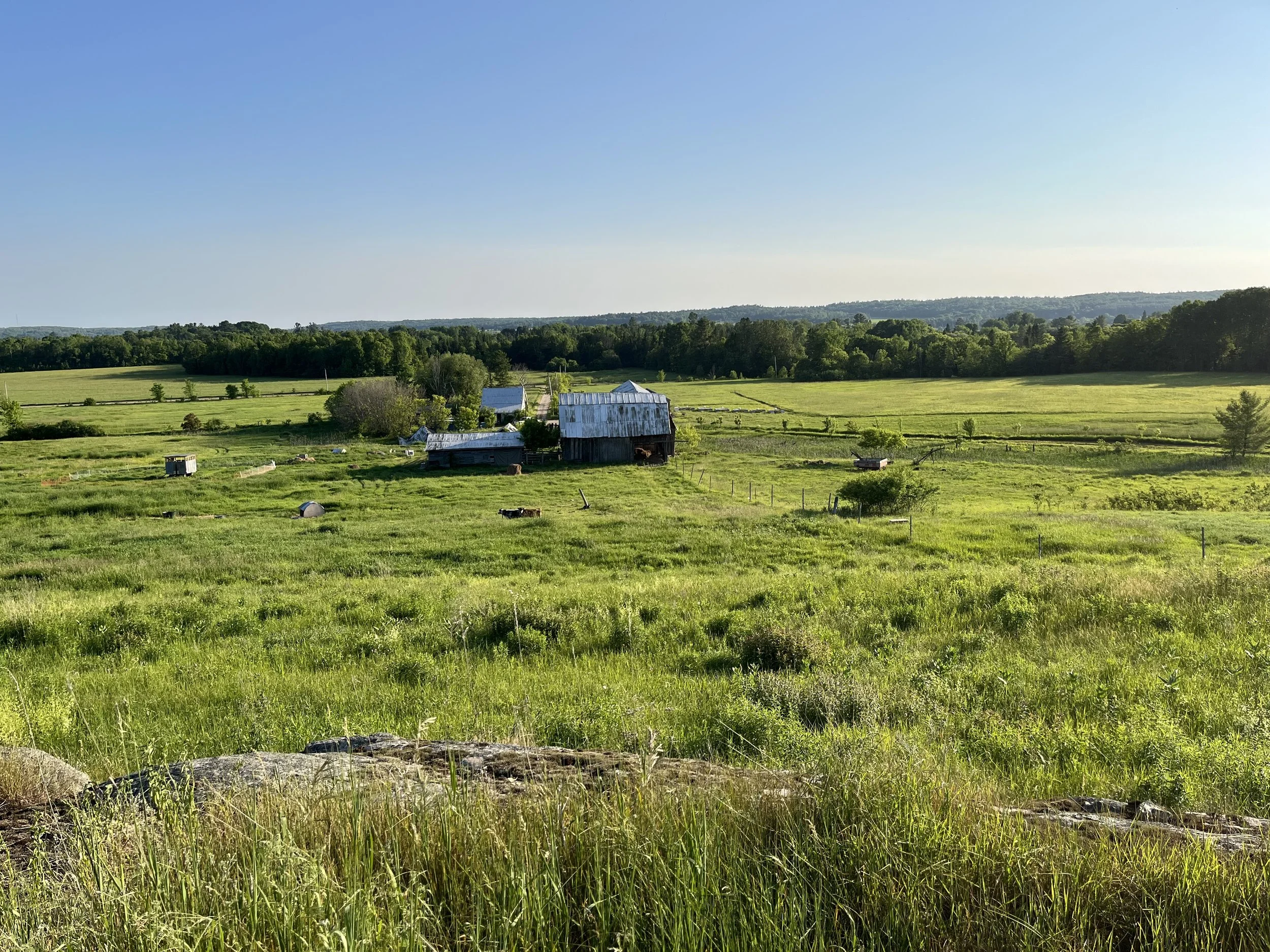 Located on the edge of Campbell’s Bay, Quebec, we are treated to scenery from the rolling hills. Being situated on the Ottawa river creates the perfect micro-climate. The mix of sand and mineral rich clay support our growing needs. Old forgotten barns are repurposed to help us get established and the pasture and hay fields are slowly coming back to life with the movement of our animals grazing.